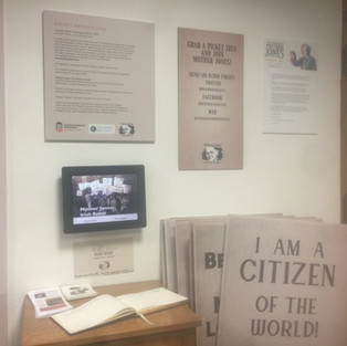 Lindsay Hand's art is the centerpiece of the exhibit. Lindsay worked with us previously on the art that was unveiled for the Mother Jones Museum in Mt. Olive, which is now on display in St. Louis. She brings a working class perspective, and she is also part Irish.